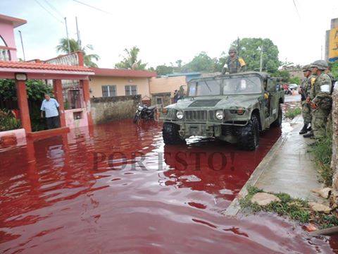 Una Misteriosa pioggia rossa ha messo in allarme gli abitanti di Valladolid nello Yucatan, Messico. Dopo questo fenomeno sul luogo dell’accaduto si e’ precipitata la guardia nazionale e l’esercito, per il momento nessuno ha avuto una spiegazione per questo mistero. Alcuni dicono che è la fine del mondo….ma molto probabilmente si e’ trattato di qualche test militare andato male.