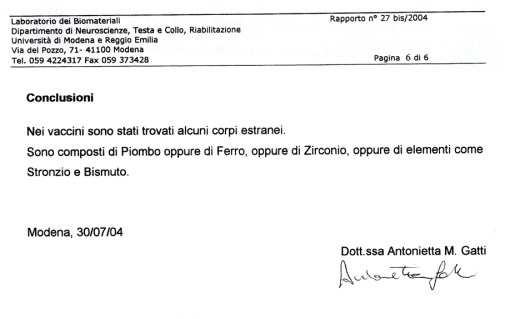 Questo è il rapporto stilato dal laboratorio dell’Università di Modena e Reggio Emilia a cura della Dottoressa Gatti.