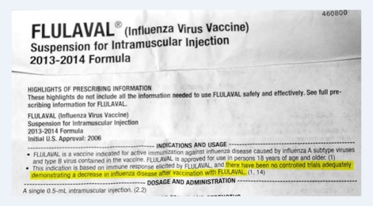 E le stesse case farmaceutiche affermano anche che, a riguardo del vaccino anti influenzale non vi sono casistiche di efficacia del vaccino in quanto non vi sono prove documentali di decremento della patologia influenzale dopo la sua somministrazione. Come scritto qui: