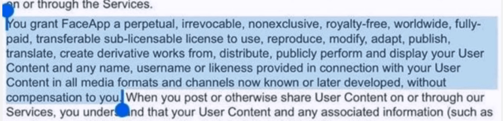 FaceApp: termini e condizioni di uso. Praticamente possono fare di questi dati ed immagini quello che vogliono