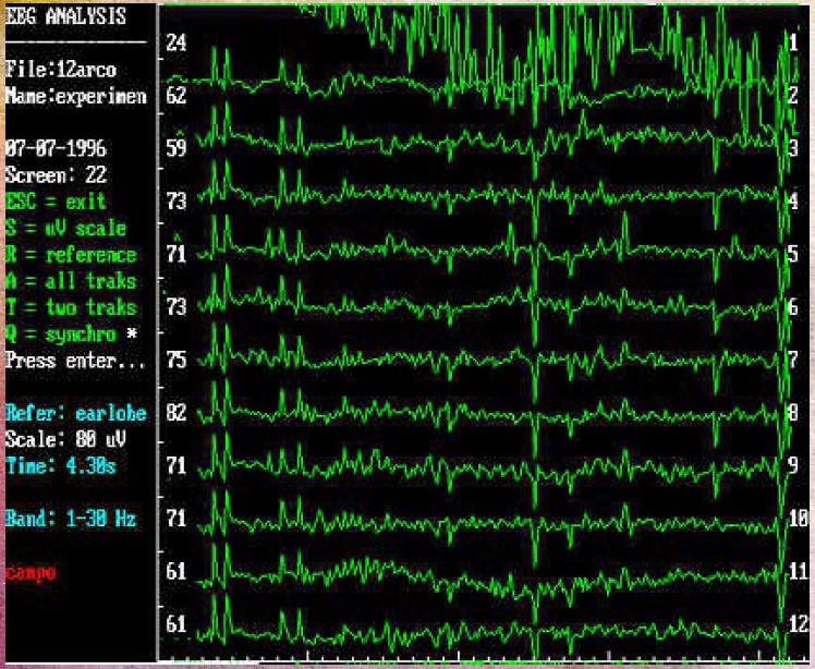 La coerenza tra i dodici tracciati nel terzo quadro è estremamente elevata, potrebbe addirittura sembrare un tracciato di dodici elettrodi presi dal cervello di un’unica persona!