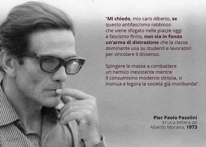 Il messaggio a lato è stato ripreso anche da Matteo Salvini, il 24 febbraio alla chiusura della campagna elettorale, in piazza del Duomo a Milano. Il meme circolava privo di fonti, a parte il riferimento a una “lettera di Pasolini a Moravia” genericamente datata 1973 [fonte]