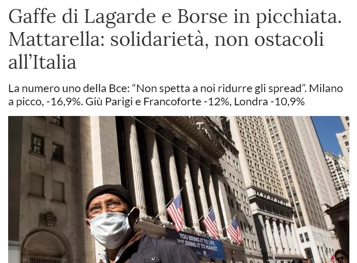 E non sarà un caso neanche che Miss Lagaffe abbia detto ciò che ha detto per favorire la precipitazione di uno scenario già di per se nero per le borse.
