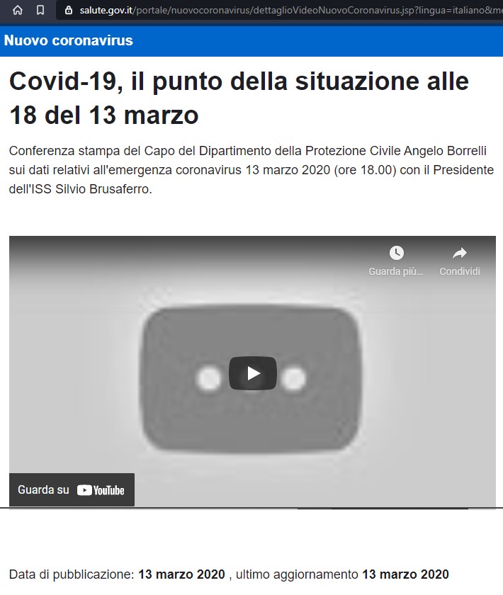 Aggiornamento maggio 2021: Poiché il video che c’era sul sito del Ministero della Salute sembra non essere più disponibile per la cittadinanza che si vuole informare ci siamo un pò allarmati e lo abbiamo ritrovato per voi sul canale Youtube della Protezione Civile e ve lo riproponiamo (col consiglio di salvarvi tutti ivideo sul coronavirus perché costituiranno un’importantissima memoria storica di tutto quanto è stato fatto e detto in quel nefasto periodo), i minuti d’interesse partono dal 10′:32″ al 13′:48″: