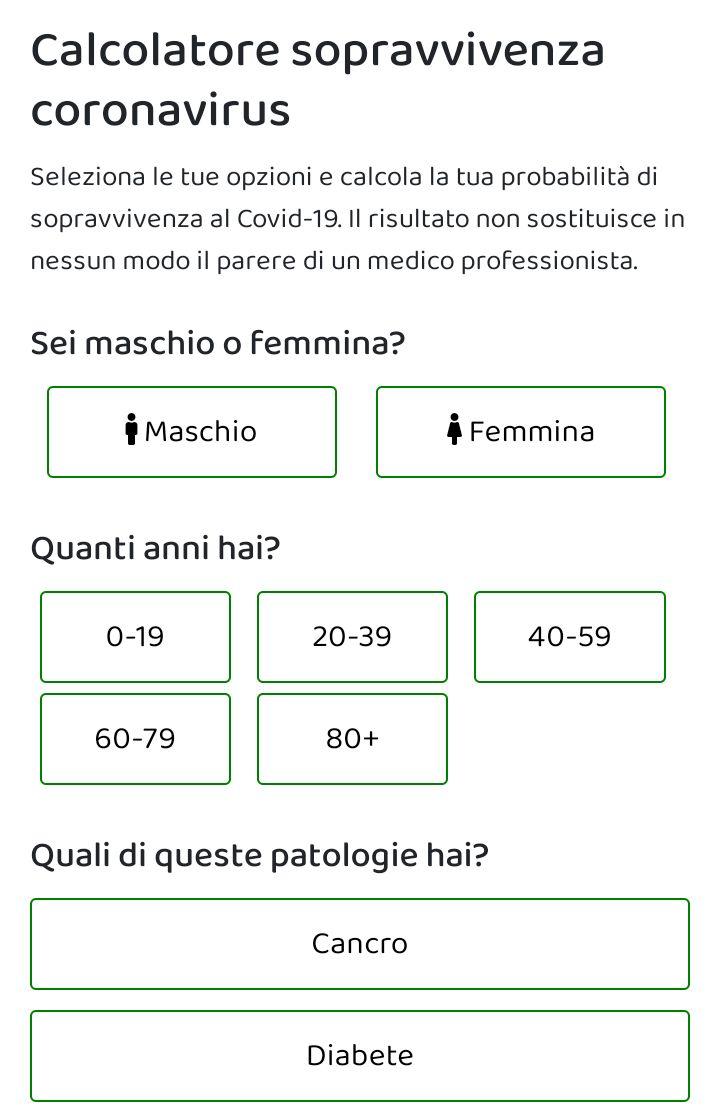 Il “Calcolatore Sopravvivenza Coronavirus” vince il premio di Pornografia sanitaria 2020!