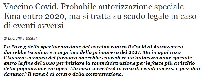 Eh si, se avete paura del Covid basta che vi vacciniate con il farmaco (a questo punto non sono nemmeno più sicuro che lo sia) che andrà a modificare direttamente il nostro DNA poi quel che succede succede.