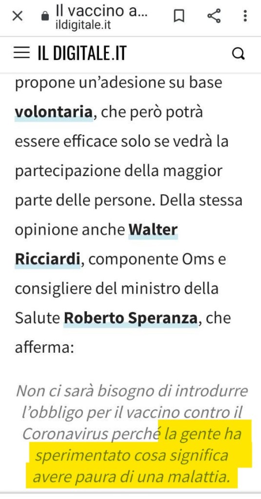 Molti di noi, moltissimi anzi, non sanno ciò che accade nell’aula parlamentare, ci limitiamo, me compreso, a leggere i messaggi, già ampiamente filtrati, che passano i giornali e le TV. Per esempio questo se fosse anche solo accennato dai mass-media sarebbe etichettato come un delirante discorso di un negazionista no-vax e per ancora molti lo è senza che lo dicano in tv…
