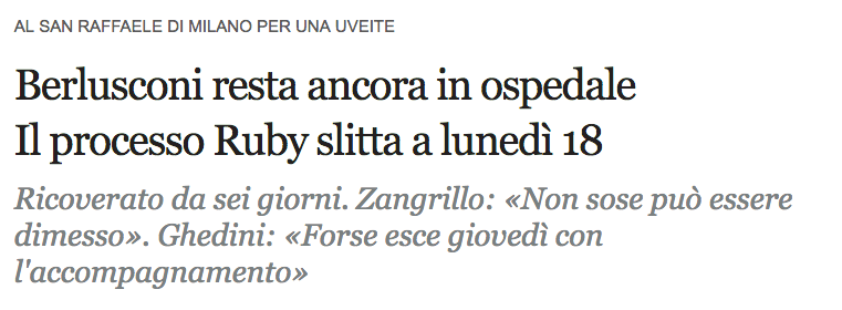 Più di sette anni sono trascorsi dall’ultima uscita famosa del dott. Alberto Zangrillo, già medico personale di Silvio Berlusconi. A quell’epoca l’ex premier era nell’occhio del ciclone per il processo “Ruby” e forse per quello che gli si infiammarono gli occhi. E già allora la TV della cultura ci regalava un altro termine da mettere nel vocabolario da bar: “uveite”. Ma forse non c’era solo l’uveite, forse le pressioni erano tante e forse gli serviva tempo… forse.