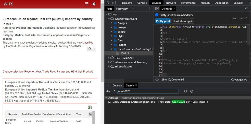 – 6/9/2020 PRIMA: https://web.archive.org/web/20200906063214if_/https://wits.worldbank.org/trade/comtrade/en/country/EUN/year/2017/tradeflow/Imports/partner/ALL/nomen/h5/product/300215#void