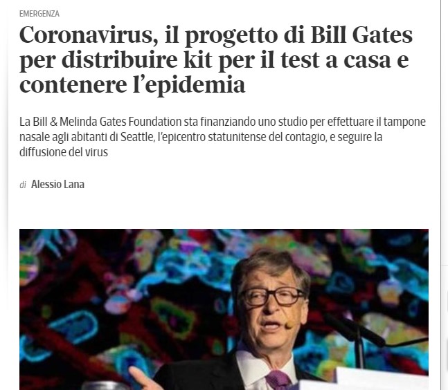 Comunque di sicuro c’è il fatto che da almeno 5-6 anni si paventava una pandemia globale e soggetti come la “Bill e Melinda gates fundation” hanno spinto affinché le nazioni “si preparassero” a questa evenienza anche con l’acquisto di kit simili e non solo con le politiche vaccinali.