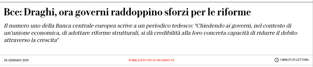 2015, correva il tempo del “quantitative easing”, dei soldi dati agli Stati ma arrivati solo alle banche a quanto pare.