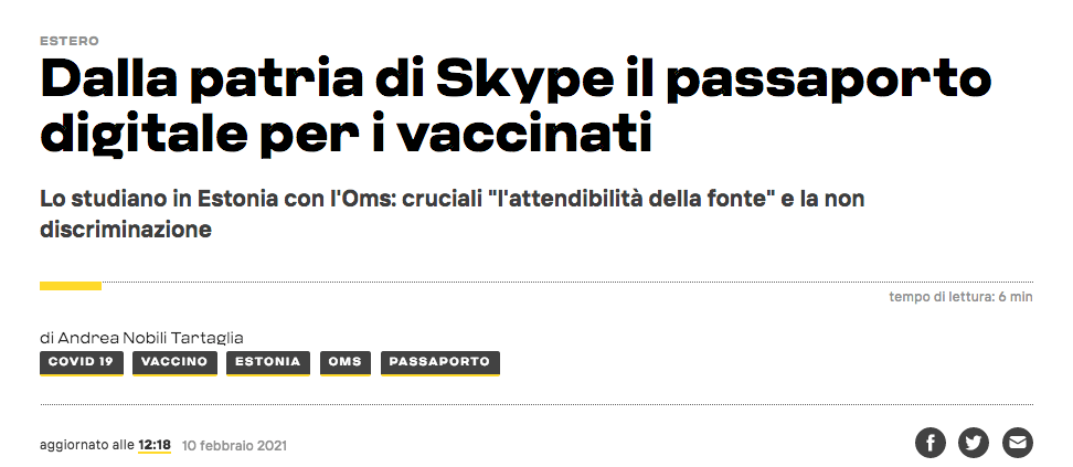 Ah, L’Estonia, patria digitale, Paese dello sviluppo ipertecnologico, avanguardia del progresso… E non poteva esserci di mezzo l’OMS? E chi è il maggiore finanziatore dell’OMS? No, non ve lo dico, forse lo sapete già.