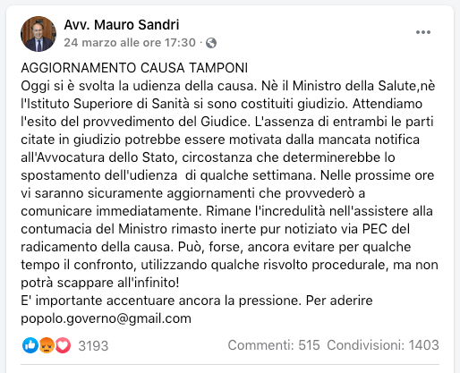 E allora s’è andati a processo per il caso “tamponi farlocchi”. Il 24 marzo c’è stata l’udienza e giustizia è stata fatta! E