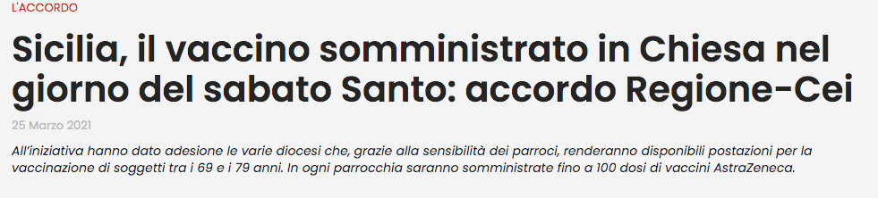 Ma se in Sicilia da una parte si grida “Al lupo, al lupo!!”, dall’altra si santifica la pratica inoculatoria. Le chiese, per la carità, sono state trasformate in succursali dei farmaci, una sorta di nososcomio cattolico. Tanto non servono più, i riti sono sciolti nell’acqua santa sostituita dall’amuchina e il termoscanner all’ingresso dei luogi di culto. Templi diventati lazzaretti della nuova peste dove i morti non si contano; per non fare brutte figure.