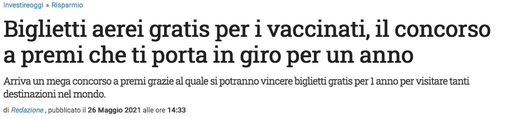 Ormai accostare “vaccino” con “morte” è all’ordine del giorno ed è una cosa così scontata che entrata nella mente dei non pensanti come fosse una consuetudine, una notizia arrivata da un altro pianeta. Tale esperimento di comunicazione massiva non trova altre ragioni che misurare il grado di asservimento delle persone; altre risposte con un fondo di logica personalmente non ne trovo.