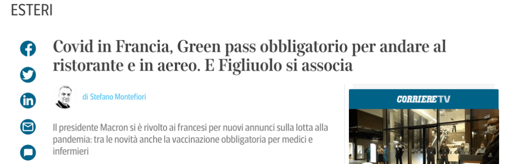 Così, quasi alla chetichella, tra il clamore delle partite nei maxischermi nei bar ora aperti ma con distanziamento, il Parlamento europeo, pubblica un comunicato con il quale si definisce la posizione circa l’obbligo vaccinale, in versione multilingua.