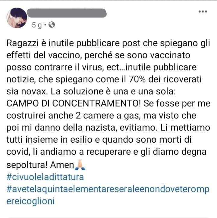 Ad oggi stiamo correndo, grazie al governo, un pericolo ben più grave del covid ovvero quello di chi si radicalizza su delle posizioni che rischiano di portare a dei grossi errori di valutazione che possono costare molto caro.