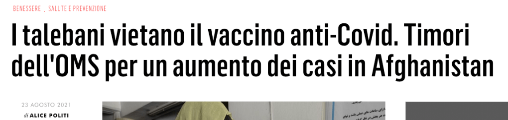 Ecco, facciamo finta che, quasi al termine della prima campagna vaccinale (crederemo mica sia finita lì?), vi sia la parvenza di un’abbassamento delle armi ma, in fondo, sia solo per distrarre le masse per preparare la scena successiva; cosa di meglio, quindi, di una nuova ondata di ipotetico terrore strisciante? Lo potremo chiamare Afghanistan?