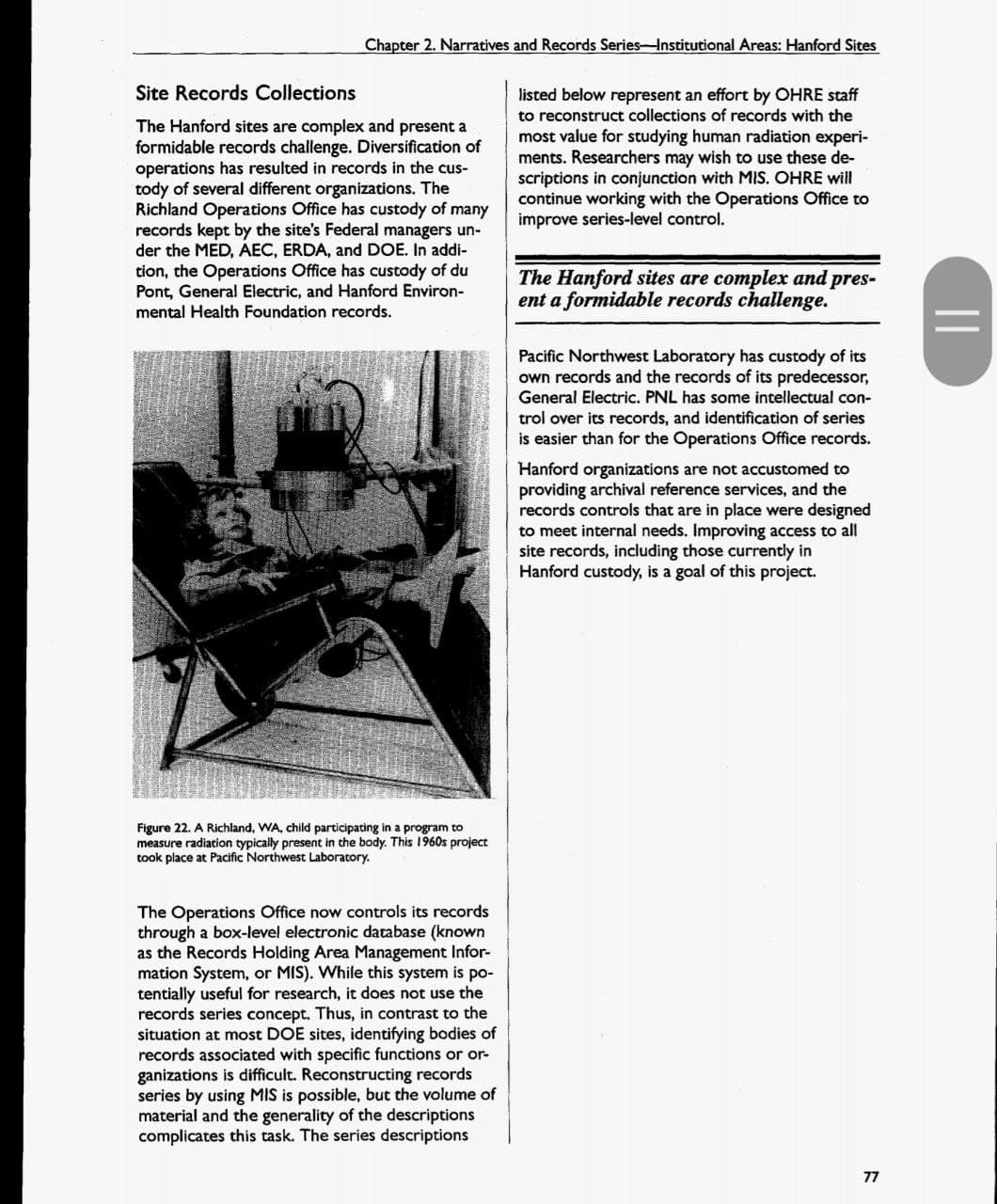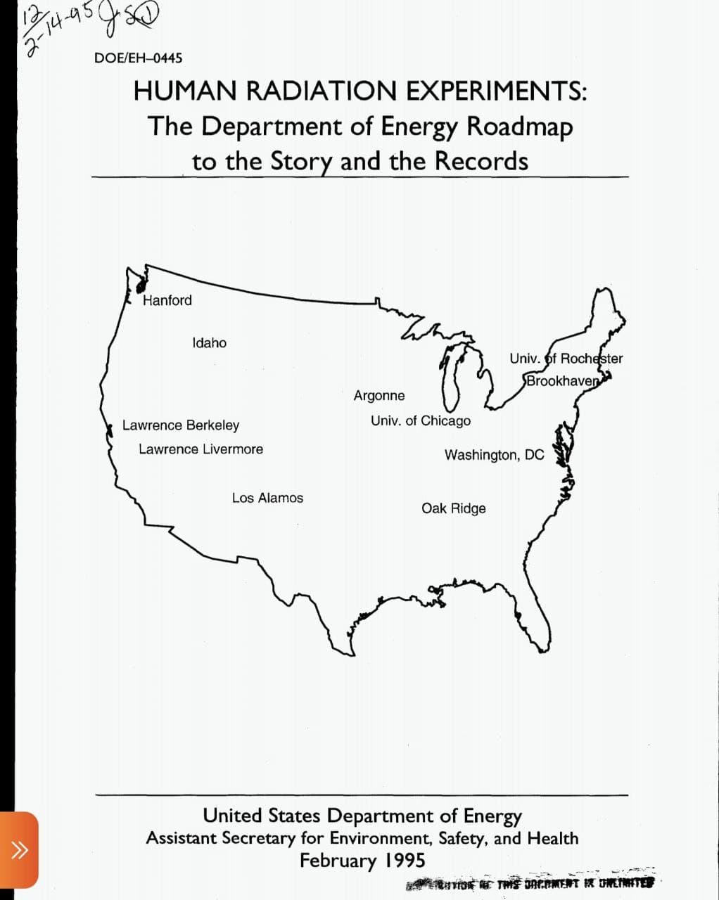 « Negli Stati Uniti sono stati condotti numerosi esperimenti sulle radiazioni umane, molti dei quali sono stati finanziati da varie agenzie governative statunitensi come il Dipartimento della Difesa degli Stati Uniti e la Commissione per l'energia atomica degli Stati Uniti. Gli esperimenti, tra gli altri, includevano: