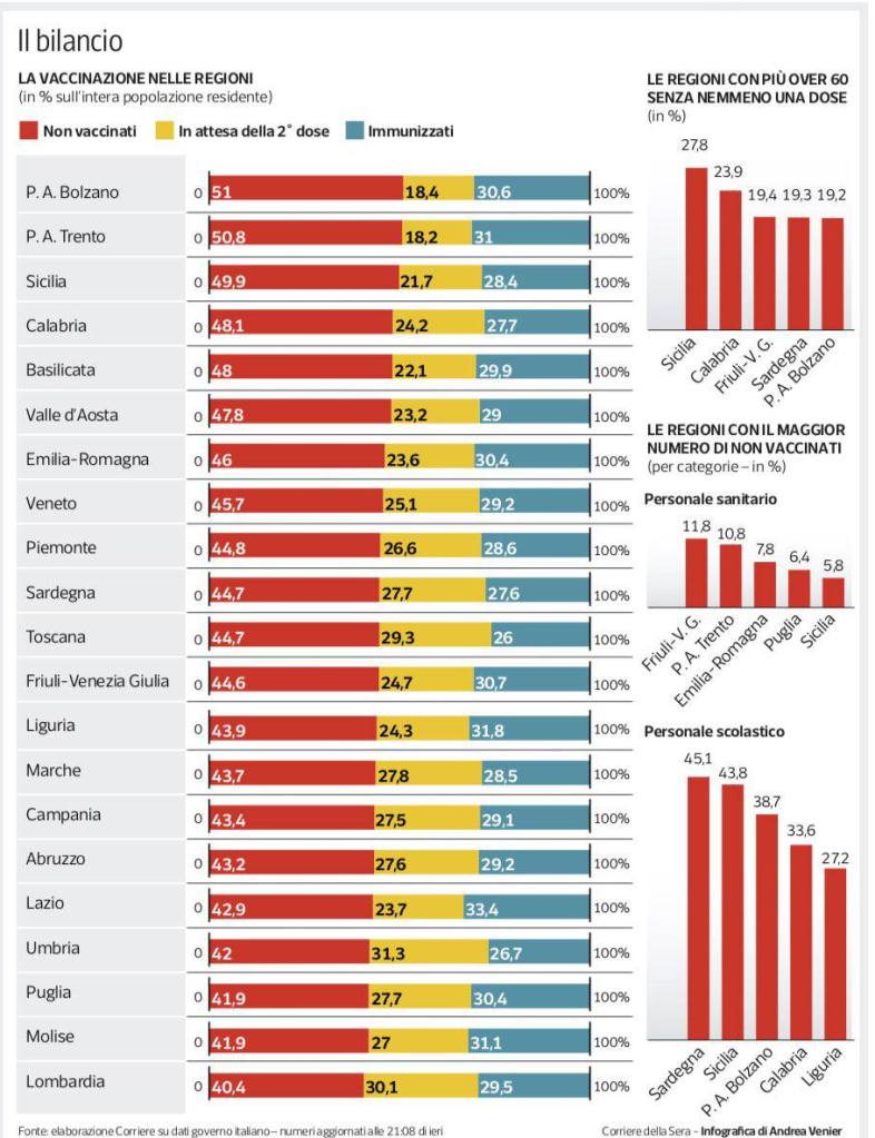 Non si scappa tanto che le numerosissime proteste, andate avanti per mesi senza alcuna eco mediatica se non per stigmatizzare e mistificare, sulle modalità di gestione palesemente e pesantemente discriminatorie per oltre un terzo della popolazione italiana (prima dell’introduzione del greenpass per lavorare coloro che non si erano ancora vaccinati erano oltre il 40% vedi foto a lato) non hanno sortito praticamente alcun effetto concreto sull’apparato politico.