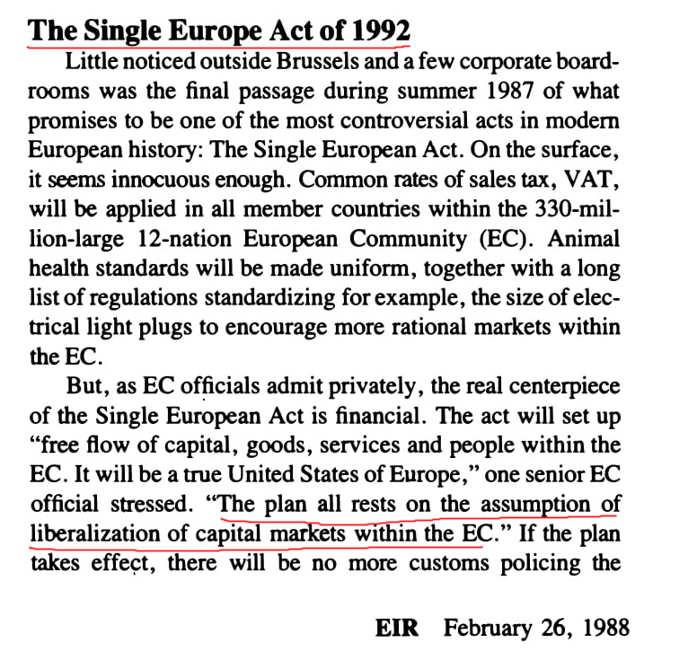 – 1992 and the Single European Act L’Atto unico europeo (VAS) è stata la prima grande revisione del Trattato di Roma del 1957. La legge ha fissato l’obiettivo della Comunità europea di creare un mercato unico entro il 31 dicembre 1992 e, precursore della politica estera e di sicurezza comune (PESC) dell’Unione europea, ha contribuito a codificare la cooperazione politica europea. Il trattato di modifica è stato firmato a Lussemburgo il 17 febbraio 1986 e all’Aia il 28 febbraio 1986. È entrato in vigore il 1 luglio 1987, sotto la Commissione Delors.