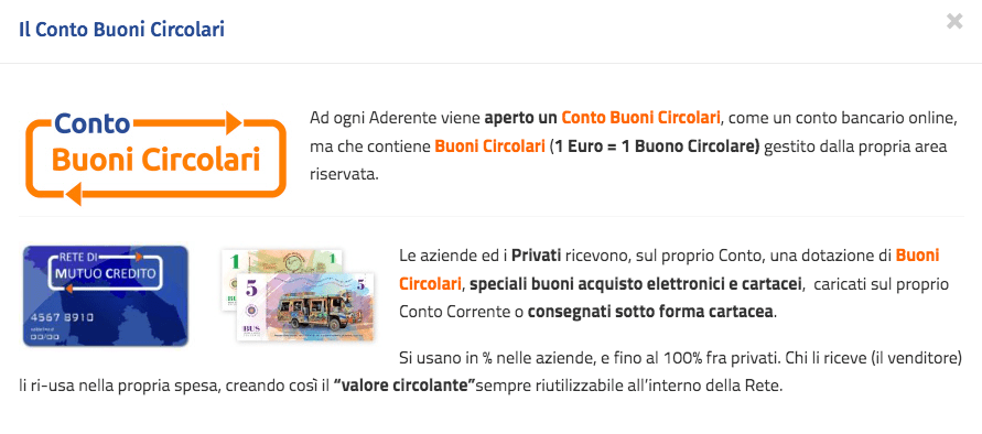 — Promuovere la circolazione degli scambi di qualsivoglia cose prodotti, servizi e competenze. Utilizzando meno Euro, o anche senza. e lo dobbiamo spendere bene.