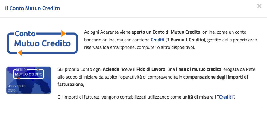 Sul sito https://www.retedimutuocredito.it/ si nota la vocazione per un servizio per le ditte, e secondariamente per il privato (almeno, questa è stata la mia sensazione n.d.a.). Ma è comunque ben strutturato e organizzato.