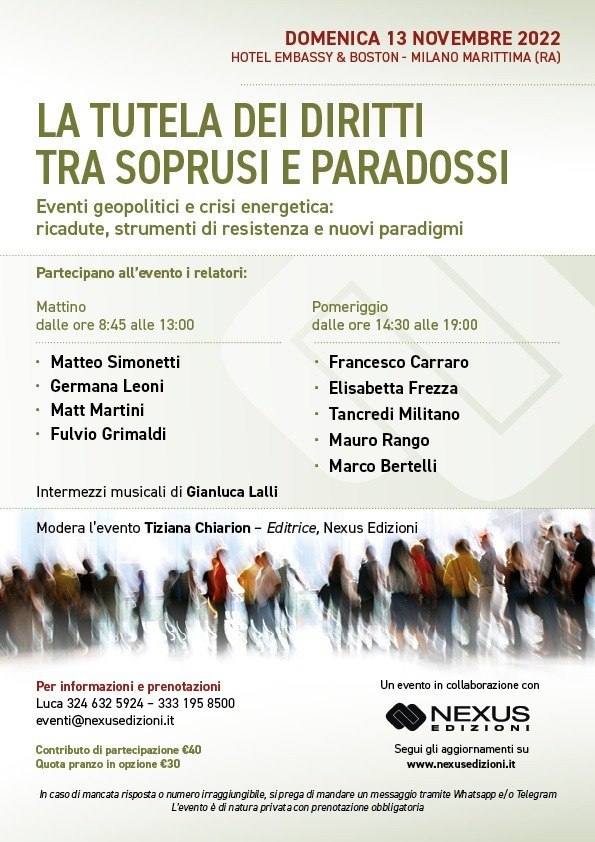 Qui la landing page dell’evento per avere maggiori dettagli: https://nexusedizioni.it/it/CT/la-tutela-dei-diritti-tra-soprusi-e-paradossi-6206/