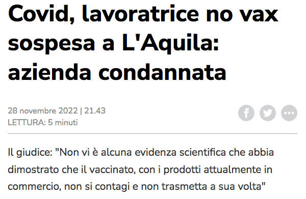 Altra bella notizia, sempre stando nel merito delle solite vessazioni, è stata quella della sentenza del giudice del lavoro de L’Aquila, Giulio Cruciani che il sito ADN Kronos riporta così:
