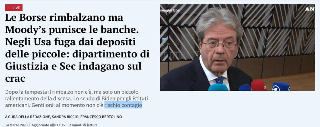Le cronache di questa settimana hanno evidenziato la crisi di una importante banca d’oltre oceano e siccome ciò che è successo dopo il fallimento di Lemann Brother’s (vedi qui: https://traterraecieloblog.wordpress.com/2020/10/29/messaggio-da-un-infiltrato/) dovrebbe ritornare alla memoria, vorrei anch’io dare una mia opinione a ciò che questa notizia vorrebbe REALMENTE trasmettere.