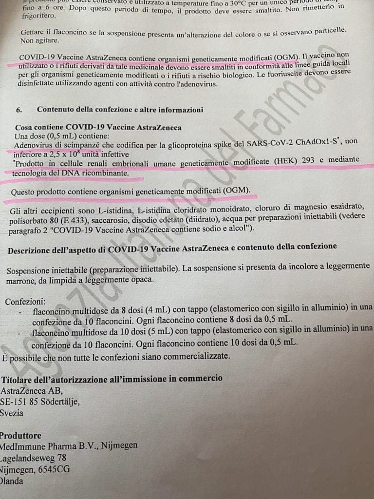 Per inciso, la glicoproteina S citata nel documento è la proteina SPIKE, quella che il Prof. Malone (un veterano della biotecnologia a m.Rna) ha definito come tossica. Quanti dei milioni che si sono vaccinati hanno letto fogli simili? Quanti sanno da che lotto proviene il siero magico che si sono fatti “sparare in vena”? (lo so che è intramuscolo la puntura, nda) E soprattutto quanti (sempre per quella storia del 47%) ne hanno davvero compreso le gravi implicazioni vagamente rilevabili da queste parole?