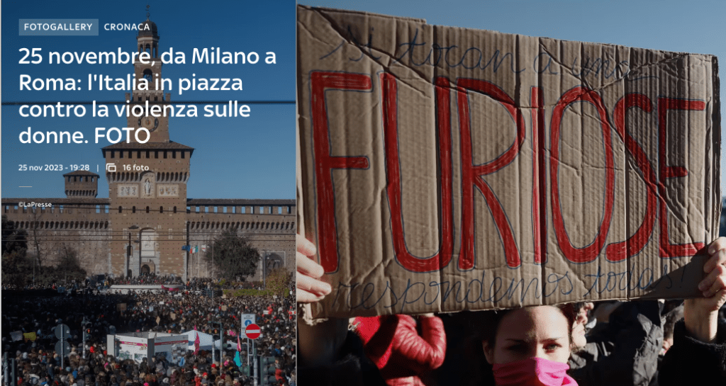 Venerdì scorso poi, sotto un cielo disseminato di artificiali nuvole di nanoparticolato aviodisperso “come non ci fosse un domani”, si è svolta anche da noi la tradizionale manifestazione contro la violenza delle don…, ops, scusate, …sulle donne, con tanto di nuova panchina comunale inaugurata per l’evento strappalacrime e strappapplausi a comando. Organizzato dal sindacato CGIL, quello che difende i lavoratori e che due anni fa esponeva orgogliosamente uno striscione fuori dalla sede con la scritta “siamo vaccino contro il fascismo”.