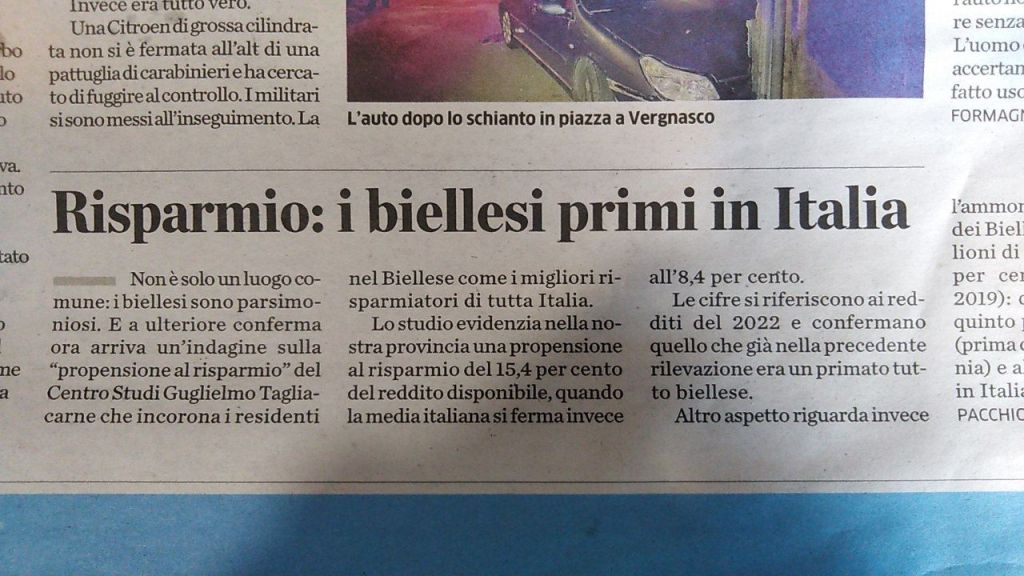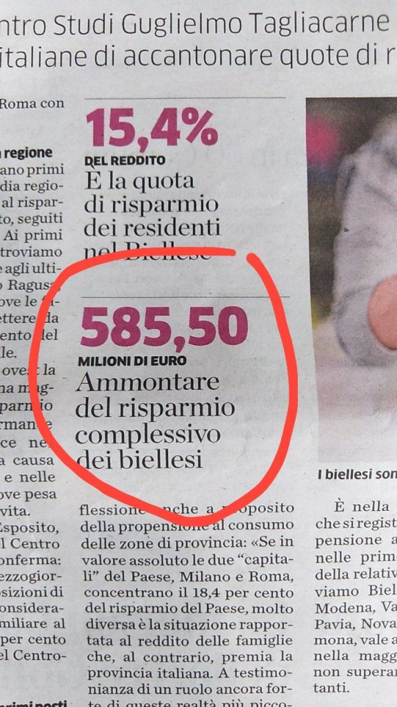 E, dopo avere postato queste notizie, una lettrice del nostro canale Telegram ha affermato “Dovrei sposarmi un biellese…”. Mi auguro non desideri una tale condizione perché sarebbe condannata a vivere miseramente.