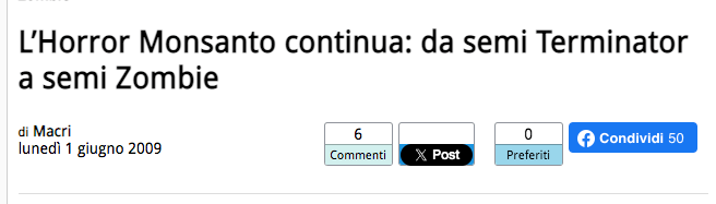 E siccome il vizietto dei semi come arma biologica e commerciale è ben lungi dall’essere perso, la Monsanto ha deciso di estendere tale tecnologia e creare addirittura semi zombie. Ma non avevano comunicato di avere ritirato il progetto “Terminator”?