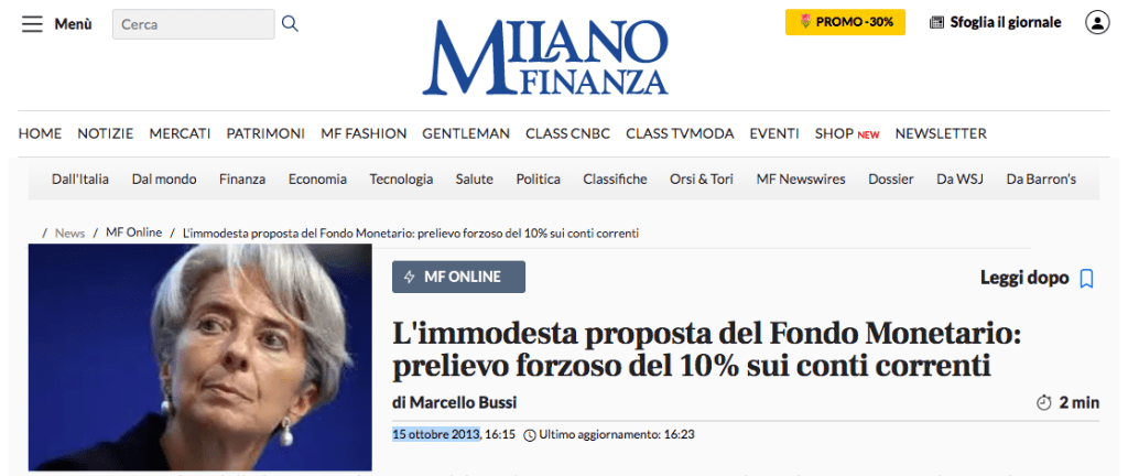 Potrà bastare questo articolo a farvi comprendere come nelle casse delle banche non dovete lasciare soldi se non per le minime spese?
