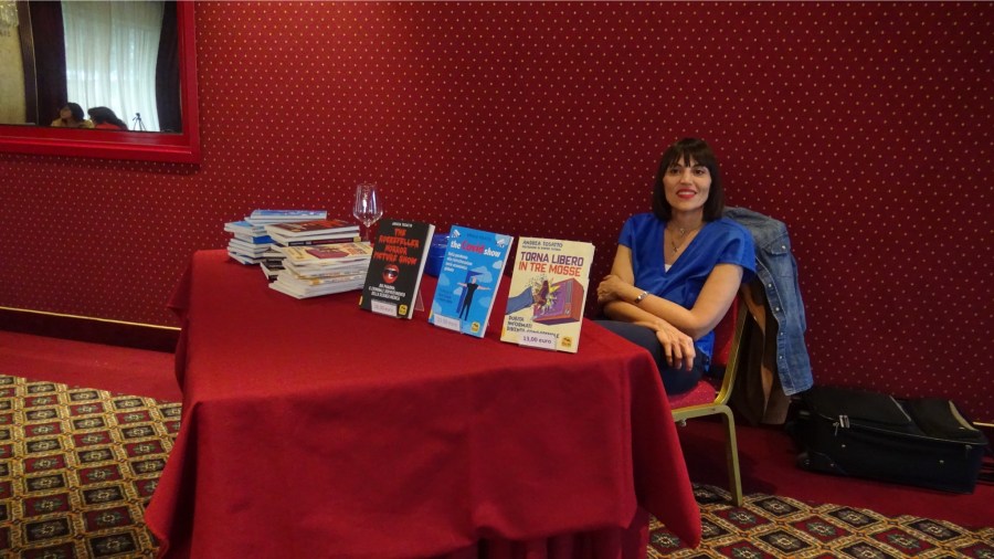 Per logici motivi di tutela non abbiamo prodotto una registrazione dell’evento ma vi possiamo proporre l’intervista che ci ha concesso prima dello spettacolo e una carrellata di foto; l’emozione dello show va giustamente vissuta dal vivo. Ce ne duole per chi non ha potuto partecipare perché, dai riscontri del pubblico, è stato veramente divertente avere informazioni di un certo tono, trasmessi con una buona dose di satira e di ironia attraverso le innegabili doti artistiche e comunicative di Andrea.