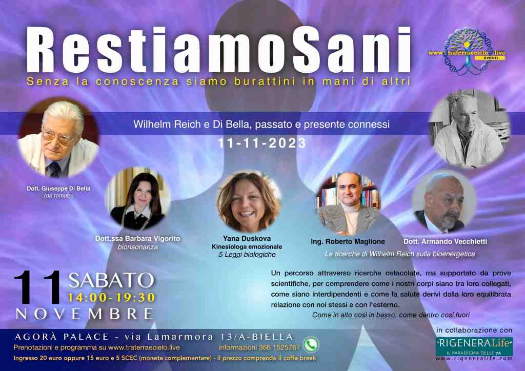 come avrete notato in “Home page”, il 13 ottobre a Biella si terrà una manifestazione – EVENTO 1310 – Tra Menzogna & Verità – che si prefigge di mettere in luce la connessione tra vibrazioni musicali, stati d’animo e le reazioni cellulari che avvengono all’interno del nostro corpo. Ma non solo, i vari interventi si svilupperanno lungo un percorso che porterà a conoscenza le correlazioni scientifiche esistenti tra i vari rami della fisica, della musica e dell’economia che, col tempo, sono state volutamente frammentate e distanziate e che, con la complicità di una informazione privatizzata e monopolizzata da personaggi spesso ambigui e con finalità tutt’altro che costruttive, sono state volutamente mistificate e strumentalizzate ad hoc.