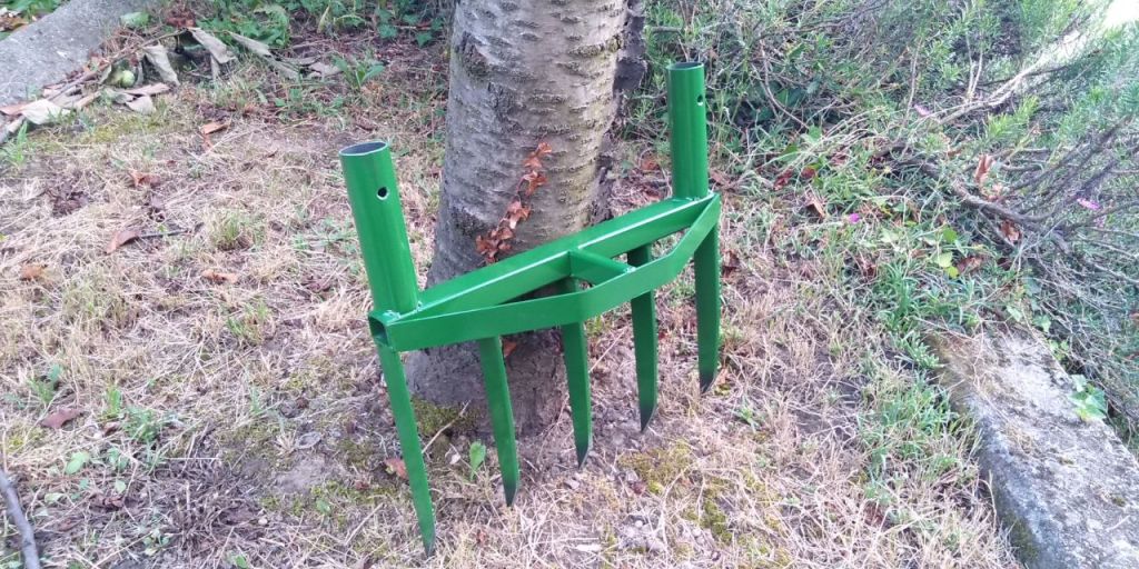 | È un attrezzo nato in Francia nella metà del XX secolo, utile per dissodare il terreno senza l’uso di macchinari agricoli invasivi, come erpice o aratro. Il suo utilizzo permette di mantenere intatta la micoriza e nello stesso tempo di arieggiare il terreno e prepararlo alla fresatura mantenendo vivo il microbiota del substrato. |