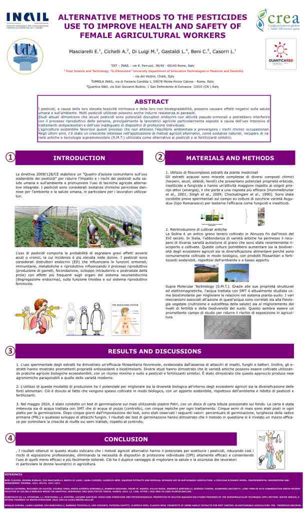 Fra i progetti esposti, *l’Italia, rappresentata dall’INAIL*, illustrerà *”Metodi alternativi all’uso dei pesticidi per migliorare la salute e la sicurezza delle lavoratrici agricole”*, che esplora soluzioni sostenibili per ridurre l’uso di pesticidi dannosi per la *salute umana, sia maschile che femminile, e per l’ambiente*. I pesticidi, noti per la loro tossicità e per la resistenza sviluppata dai parassiti, sono particolarmente pericolosi per le donne, poiché possono agire come interferenti endocrini, compromettendo il sistema riproduttivo femminile.