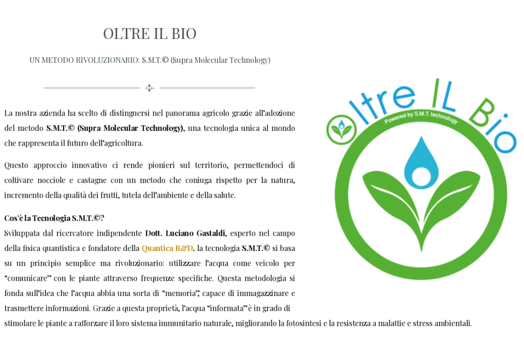 Il progetto sottolinea l’importanza della *Tecnologia Supramolecolare (S.M.T.) di Quantica R&D*, che, grazie alle proprietà strutturali ed elettromagnetiche dell’acqua trattata, migliora la fertilità del suolo e la difesa delle piante, riducendo i rischi agricoli. Verranno presentati i risultati di esperimenti che dimostrano l’efficacia della Tecnologia S.M.T., in grado di ridurre l’attacco di muffe sui semi, *favorendo un’agricoltura più sicura e sostenibile*, con vantaggi significativi per la salute dei lavoratori agricoli, dei consumatori e per l’ambiente.